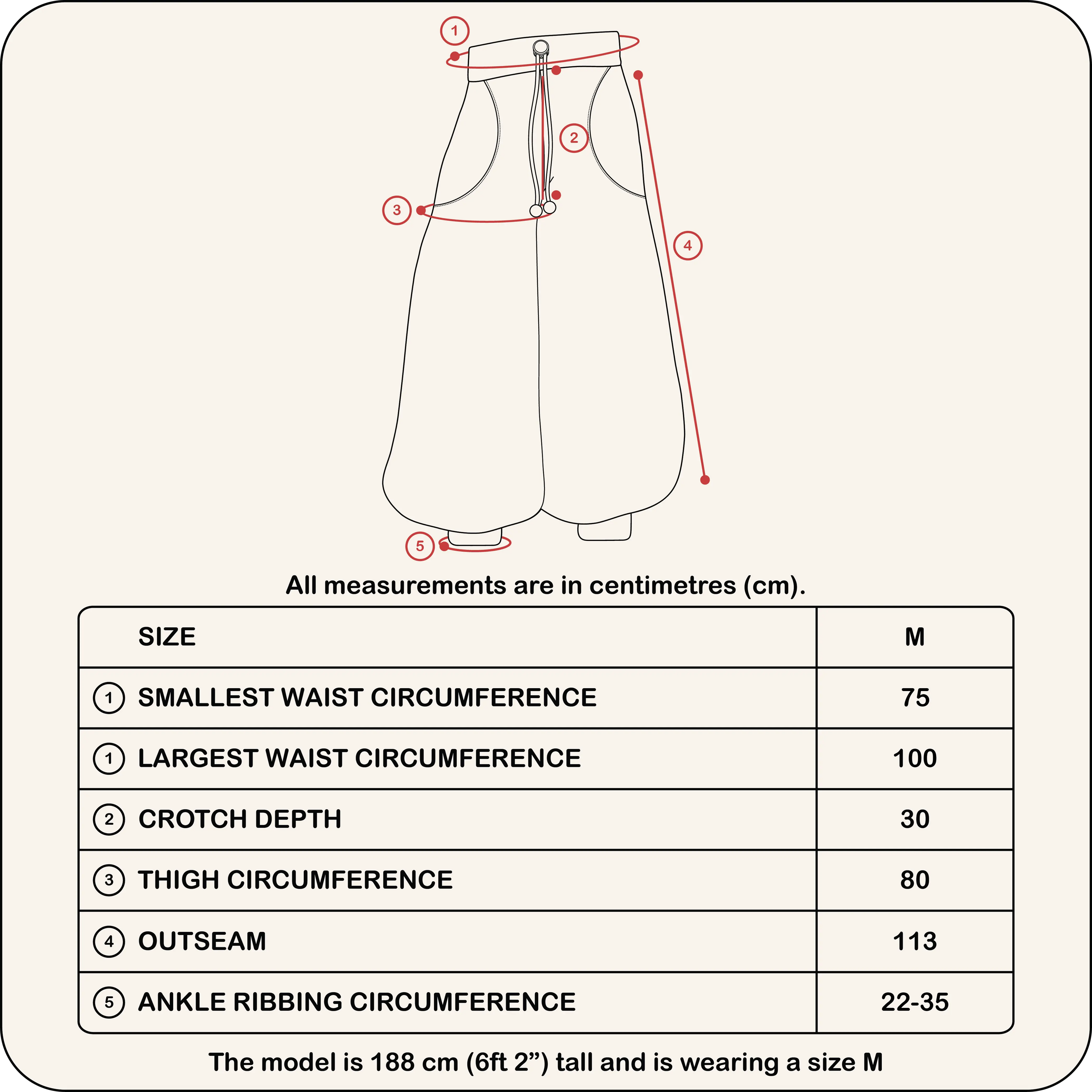 These wide-legged drop crotch pants create a relaxed, flowing silhouette. A long, tight ankle cuff gives shape without dragging on the ground, and the adjustable cuff ensures a perfect fit for all leg lengths. At the waist, long drawstrings with a large cord lock are finished with hand-sewn felt balls, adding a playful detail that matches the LEMPPARI hoodie.